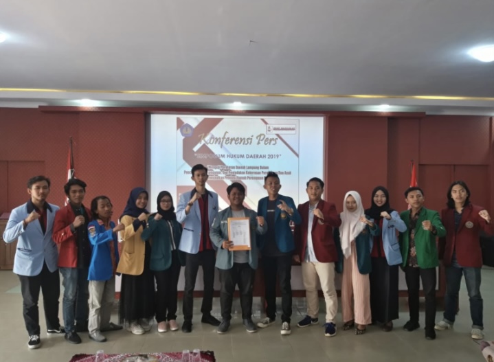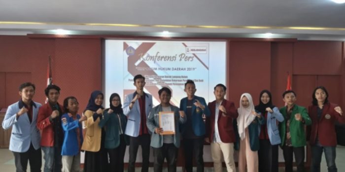 UKM-F Mahkamah Fakultas Hukum (FH) Universitas Lampung (Unila) bersama perwakilan mahasiswa dari beberapa perguruan tinggi di Provinsi Lampung menggelar konferensi pers dan pembacaan draf Simposium Hukum Daerah 2019. Acara diselenggarakan di Aula Gedung D Fakultas Hukum Unila.