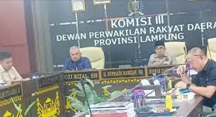 Komisi III DPRD Provinsi Lampung menekankan pentingnya peningkatan kinerja OPD pengelola pendapatan, penguatan sistem pengelolaan keuangan daerah, serta transparansi dan akuntabilitas dalam penyampaian data dan laporan keuangan. DPRD meminta agar seluruh OPD terkait menyampaikan data secara lengkap, valid, dan tepat waktu sebagai bahan evaluasi dan pengawasan legislatif.